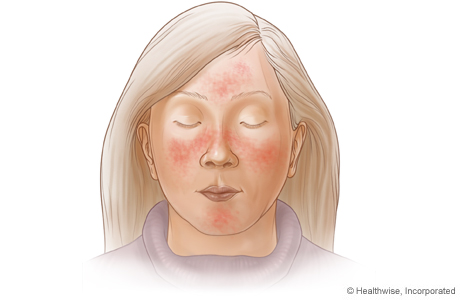 RosaceaRosacea is a skin disease that causes redness on your nose, cheeks, chin, and forehead. Some people may have little bumps and pimples. The redness may come and go, but it is different from having a ruddy complexion or having a sunburn. Rosacea can also cause burning and soreness in the eyes. ByHealthwise Staff Primary Medical ReviewerKathleen Romito, MD - Family Medicine Adam Husney, MD - Family Medicine Specialist Medical ReviewerAmy McMichael, MD - Dermatology Current as ofOctober 13, 2016 Current as of: